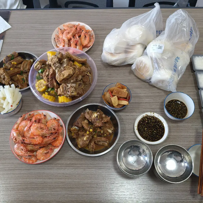 Ông Xu, người thường xuyên bận rộn, đã tự mình phụ trách bếp, cho thấy ông rất giỏi chế biến một số món ăn truyền thống kiểu gia đình. Mọi người ở đó đều nói rằng họ tuyệt vời như thế nào. Trong khi đó, quản lý Cui đang nấu món hầm ngô và sườn lợn nổi tiếng của mình, món mà ông nấu từ từ. Miếng sườn được nấu từ từ, nhẹ nhàng nên mềm ngon, bắp ngấm đều nước sốt thơm ngon. Món ăn này là sự kết hợp độc đáo giữa vị ngọt và mặn, để lại một hương vị vừa ngon vừa đáng nhớ. Thật bất ngờ khi các đối tác của chúng tôi đã gửi cho chúng tôi một hộp rau muối thơm ngon. Món ăn kèm tươi ngon này chính là thứ cần thiết sau tất cả những món ăn phong phú đó. Đồng nghiệp quây quần bên nhau, thoải mái cười đùa, gạt mệt mỏi trong ngày làm việc sang một bên. Sự kiện này rất đơn giản nhưng quan trọng. Nó làm cho các thành viên trong nhóm gần nhau hơn và cho thấy các đối tác của chúng tôi thân thiện như thế nào. Cả văn phòng giống như một đại gia đình hạnh phúc.